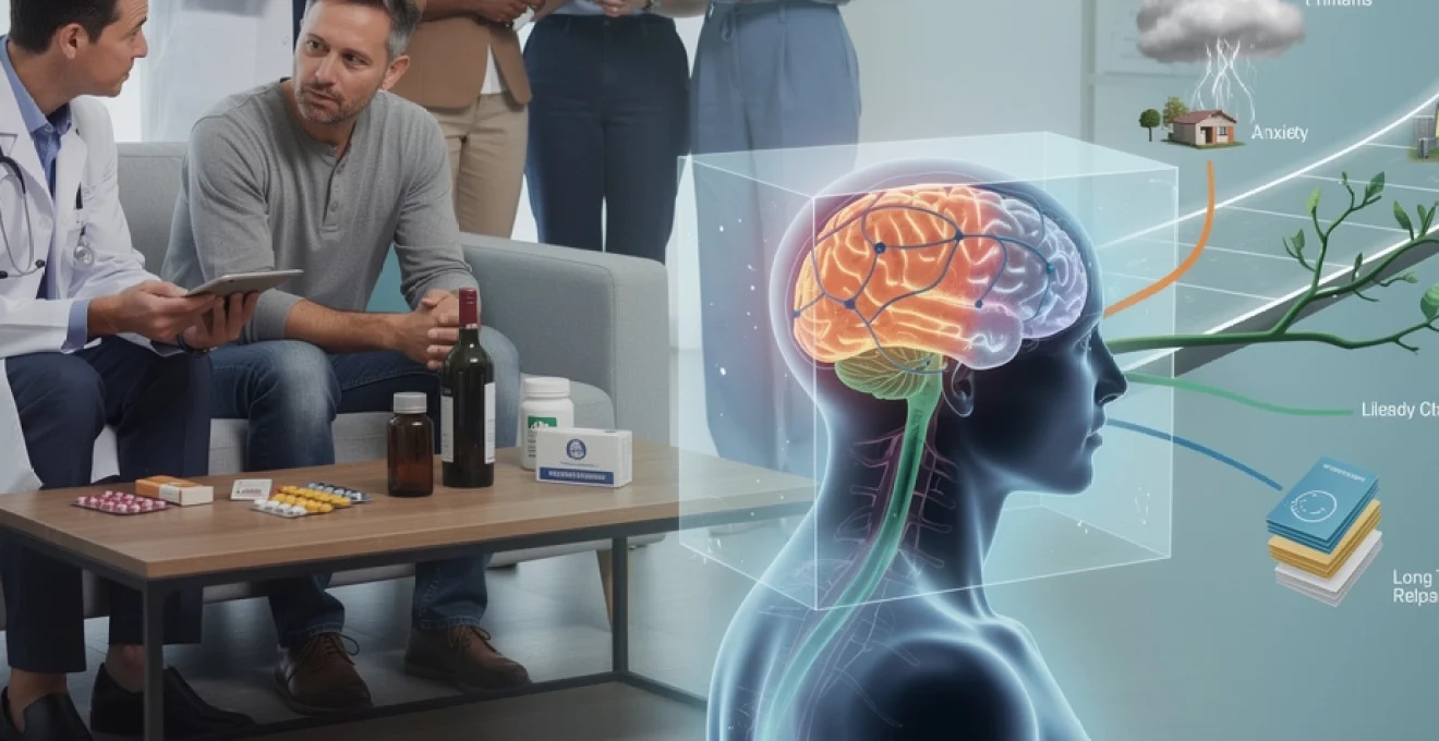 Une proportion importante de patients présentant une addiction souffre d’un trouble psychiatrique associé : anxiété, dépression, trouble bipolaire, TDAH, troubles de la personnalité. Ces comorbidités augmentent le risque de rechute et nécessitent souvent un double traitement, addictologique et psychothérapeutique. Les recommandations internationales insistent sur un dépistage systématique, notamment avec des questionnaires validés (PHQ-9 pour la dépression, GAD-7 pour l’anxiété, échelles spécifiques pour le TDAH). Un sevrage sans prise en charge de ces troubles sous-jacents expose à une souffrance psychique intense, qui peut rendre la consommation à nouveau « attrayante » en tant que faux régulateur émotionnel.